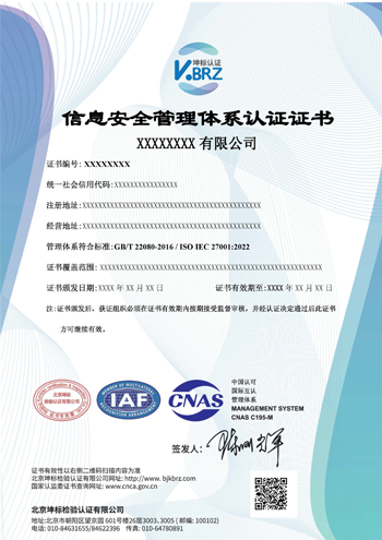 | 能源管理體系證書模板 | ISMS無標志證書模板 |